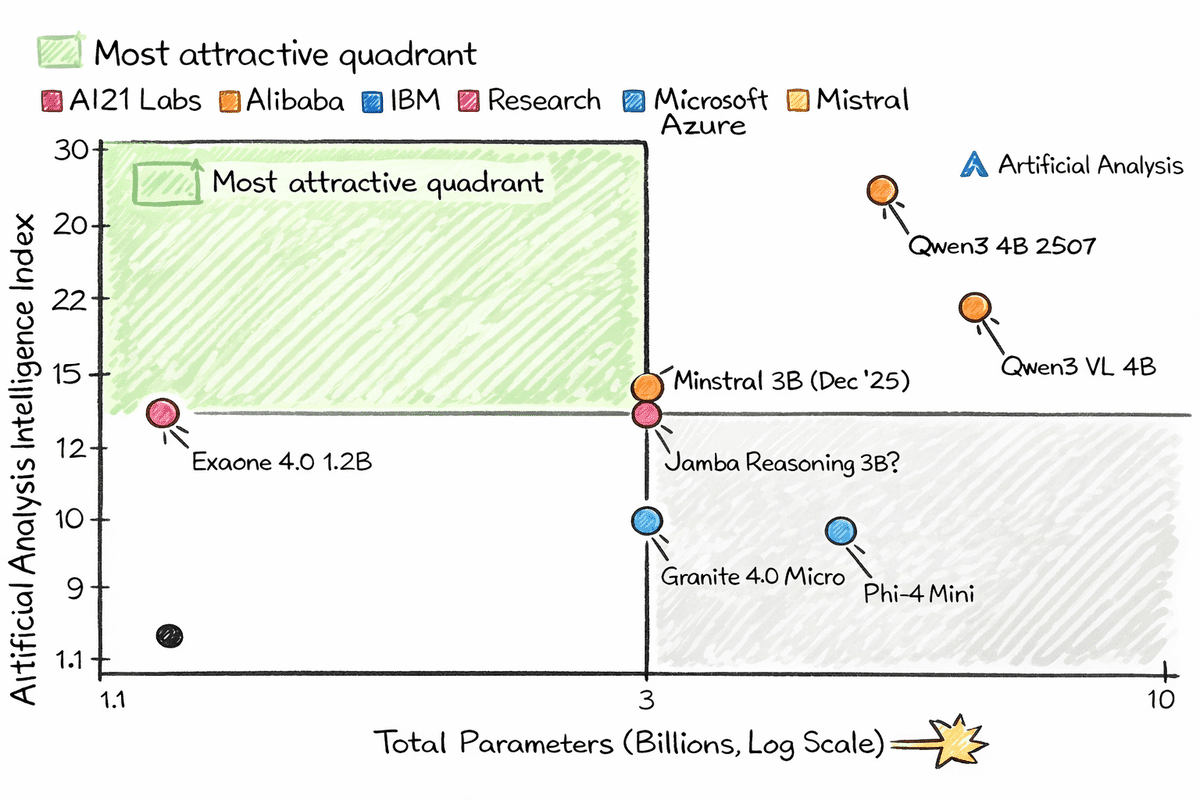 On intelligence benchmarks, it outperforms comparable smaller models such as the Gemma 3 4B and Llama 3.2 3B on the combined scores of multiple evaluations, demonstrating unusually strong reasoning abilities for its class.
