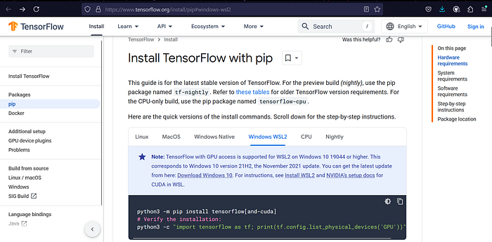 pip install tensorflow(and-cuda)