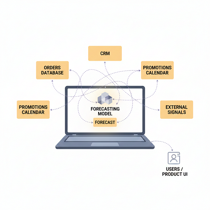 In retrospect, the same issues arise again and again. The forecast lives in the notebook instead of the product. Changing the schema breaks the integration. Adding new context such as promotions or weather requires custom ETL work. When the forecast changes, no one can easily tell why.
