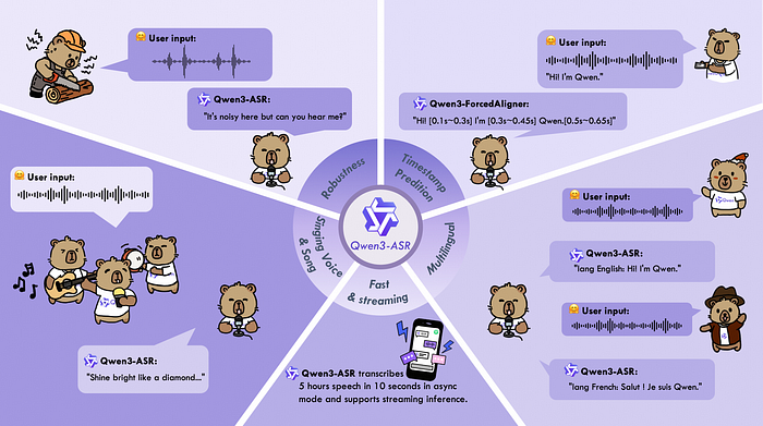 Alibaba’s Qween team has introduced Qween3-ASR, an open-source speech recognition system supporting 52 languages ​​and dialects. Key models include Qwen3-ASR-1.7B, which claims state-of-the-art performance for multilingual tasks, and Qwen3-ForcedAligner-0.6B, a non-autoregressive model for accurate speech-text alignment. These developments allow for better handling of Chinese dialects, user-generated content in multiple languages, and increased timestamp accuracy for applications requiring precise audio-text synchronization.