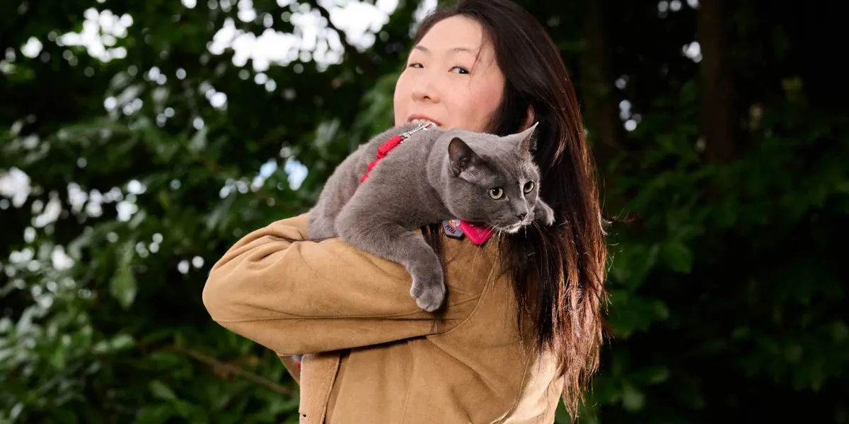 Darwin’s Arc turns its attention to cats in 2024, and although it’s too early for any results, even the research methods are proving interesting. A common method for extracting DNA from a live animal is to swab the inside of the cheek. Dogs don’t mind this process, but cats aren’t as comfortable with getting something stuck in their mouth. Nor do cats appreciate having hair plucked from their follicles, which is another potential source of DNA for sequencing. So Chad Nussbaum, PhD ’91, another Human Genome Project collaborator whom Liu recruited, helped the Darwin’s Ark team figure out how to effectively extract DNA from hair or shed hair—a major breakthrough for the field. (This means, in practice, that cats’ DNA is collected by brushing their fur. Now cats “not only don’t mind sample collection—some of them actually enjoy it,” Nussbaum says, laughing.)